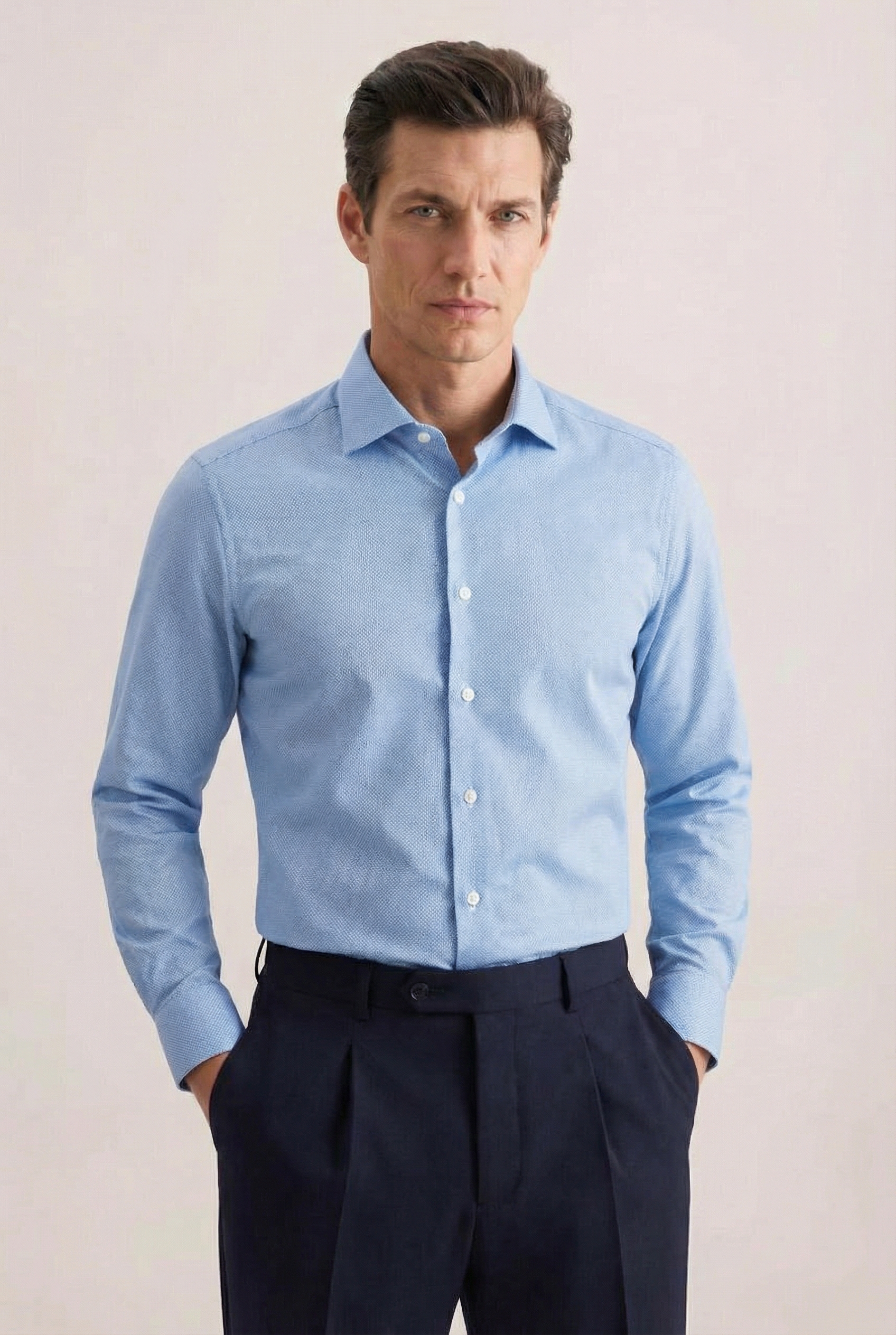 • Custom Fit, Shark, Классический (на пуговице), Принт, Голубой