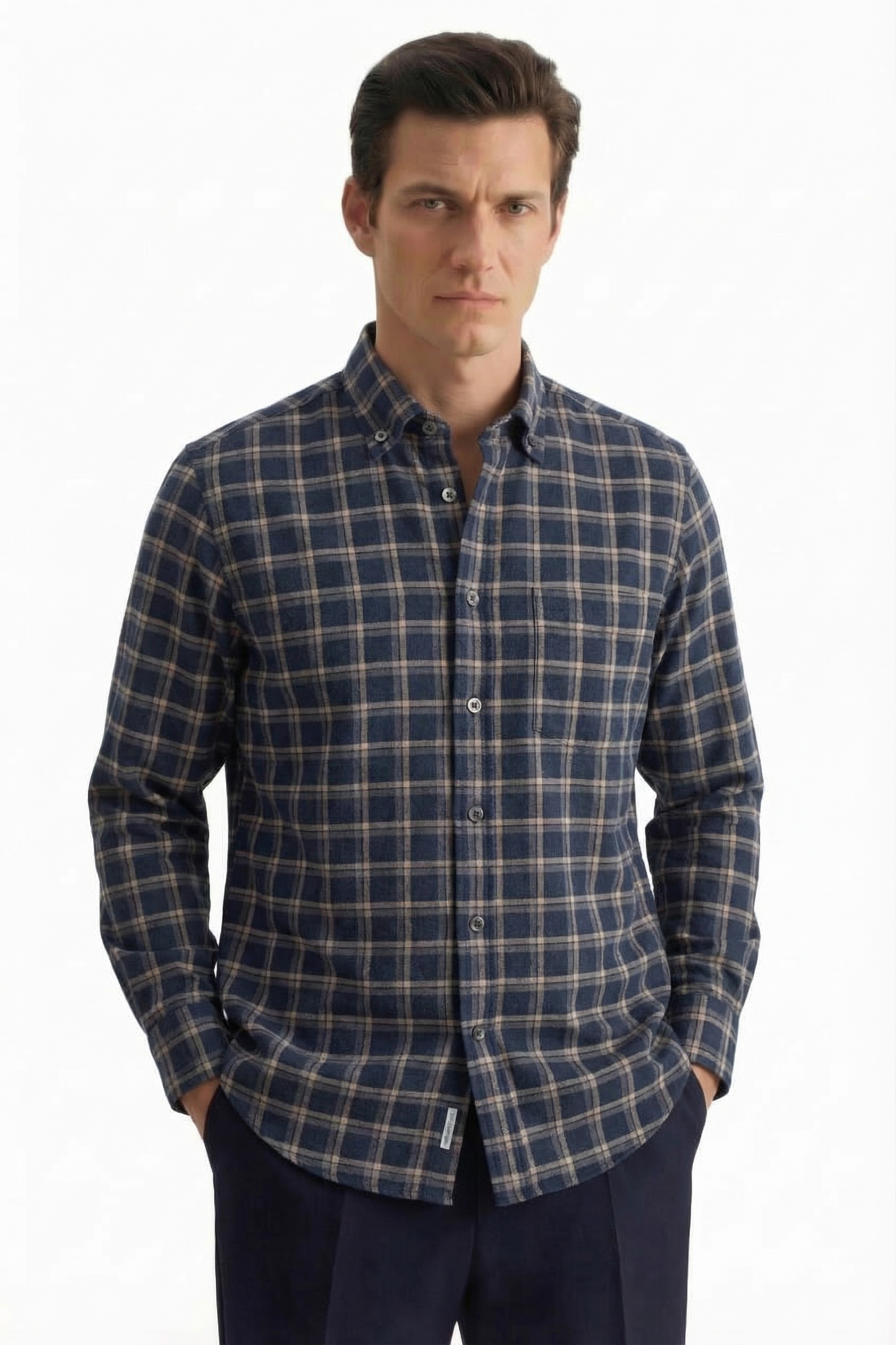 • Custom Fit, Button & dawn, Классический (на пуговице), Клетка, Синий