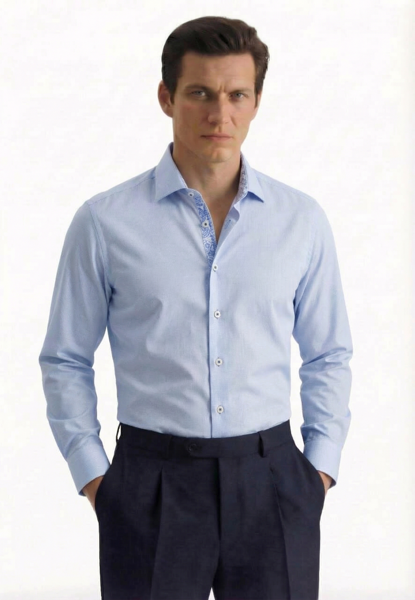 • Shaped Fit, Классический воротник, Однотонный, Голубой
